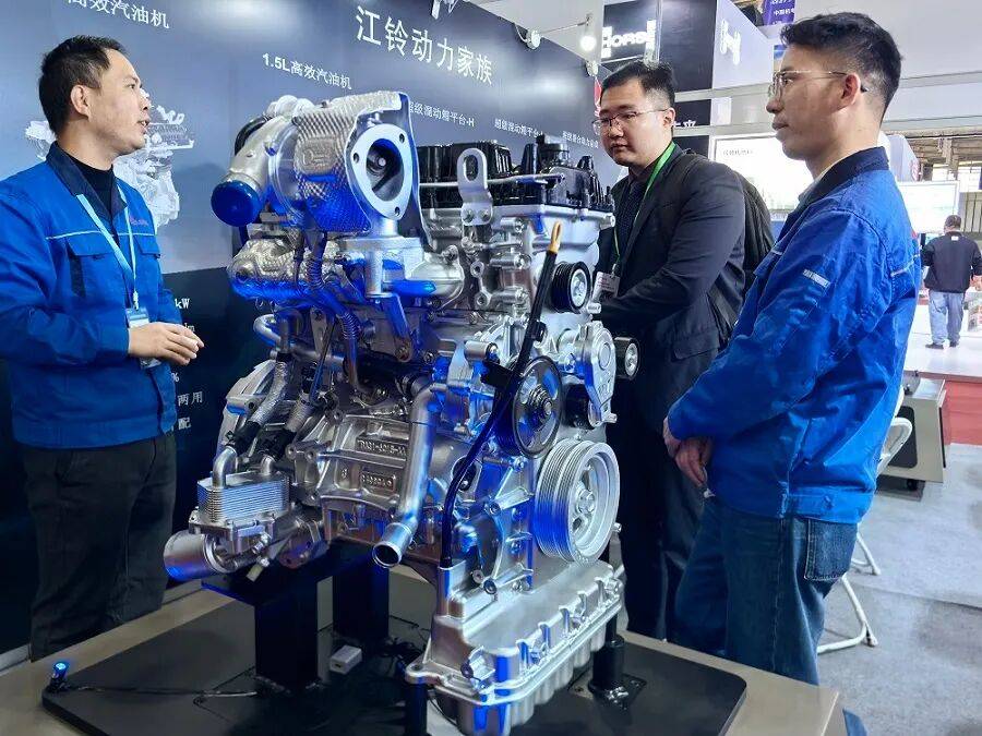 江铃带来了今年最新发布的高端柴油机品牌蓝焰动力,还带来了超级混合动力总成,其中,蓝焰作为一款2.5L的高效动力,拥有极净燃烧(热效率45.23%)、智能控制(支持OTA升级)和盾构级耐久三大核心技术,能够给轻型商用车用户提供能效、可靠以及动力方面更好的体验,主要应用于江铃轻卡和皮卡产品上。