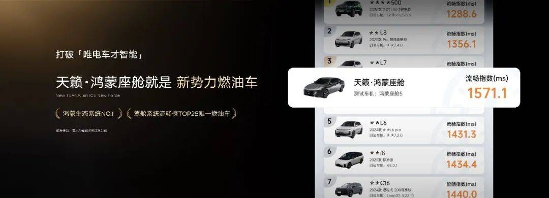 作为全球首个鸿蒙座舱燃油车,天籁·鸿蒙座舱全系标配鸿蒙座舱5,拥有超越主流8295芯片的强劲算力,实现对同级竞品的断代领先,重塑燃油车智能新标杆。