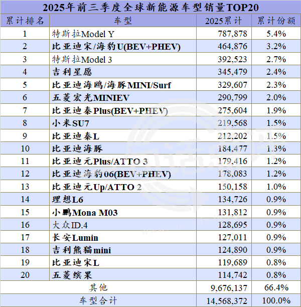 随着9月的大幅攀升,前三季度Model 3的总销量增加至39.2万辆,将与身后吉利星愿的差距扩大至4.7万辆,这样一来其应该能留在今年全球新能源车型年度销量的领奖台上。