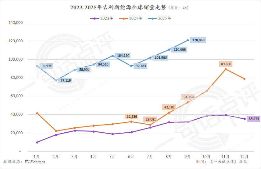 ●吉利在星愿、银河M9和银河A7等车型不断攀升的助力下,9月销量再创新高至12.1万辆,前三季度的总销量也增加至90.0万辆,几乎相当于去年同期的3倍。