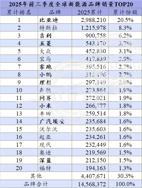前三季度零跑共售出39.6万辆,只要继续保持向上的走势,年底时应该可以取代宝马在累计榜单中跻身六強。