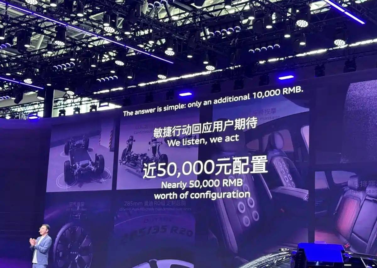 作为AUDI品牌首款力作,E5 Sportback于今年9月正式登陆市场。此次推出的奥迪E5 Sportback钦定性能quattro型,在先锋quattro型的基础上完成升级,配置上相比顶配车型调整了迎宾灯语、矩阵式大灯、调光天幕、电吸门、超纤内饰、模拟声浪等配置(不可选装w-HUD、松林绿和星际白内饰等)。外观大体延续在售车型的设计,并搭载可发光的3D立体悬浮品牌徽标。