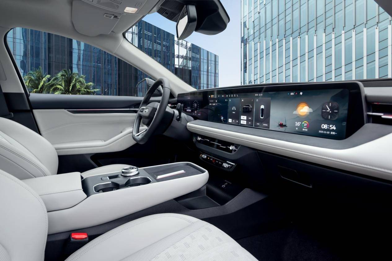 内饰则聚焦于营造“高级感”与“舒适性”。环抱式座舱设计带来沉浸式体验,高品质材质与精湛工艺凸显豪华格调。1.1米巨幅屏成为视觉焦点,并巧妙整合了实用的实体按键,确保了科技感与人机工程学的平衡。