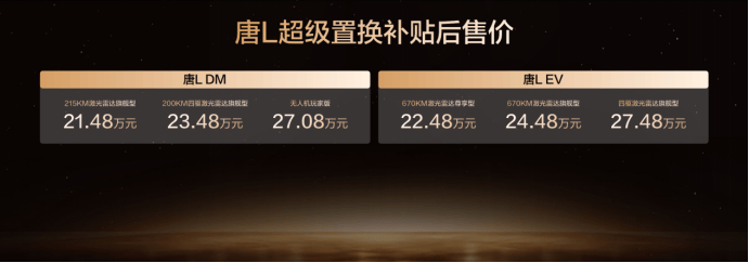 与此同时,官方公布了汉L、唐L EV/DM共12款车型的最新售价,并同步推出置换补贴在内的最高5.2万元/4.5万元权益,为年末新能源消费市场再添一枚重磅催化剂。