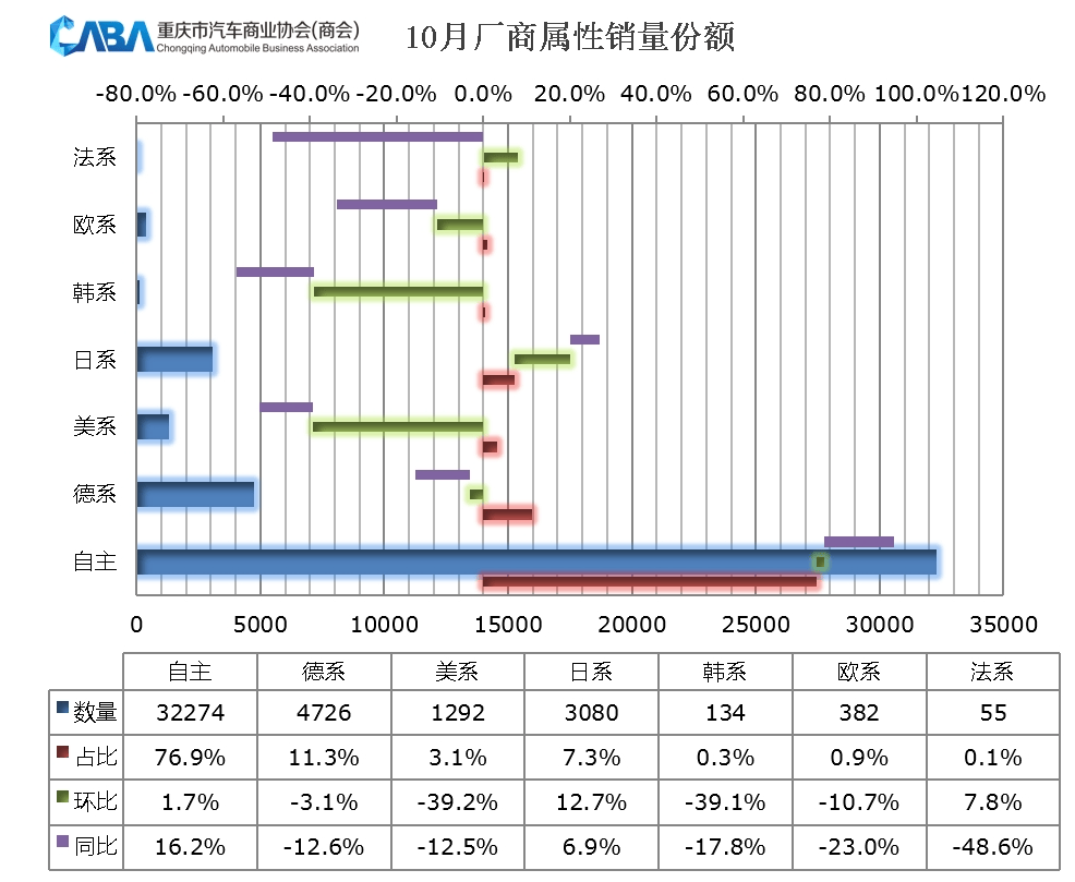 从数据上看,重庆车市10月份销量同比增长、环比下跌,基本符合“金九银十”的市场预期。