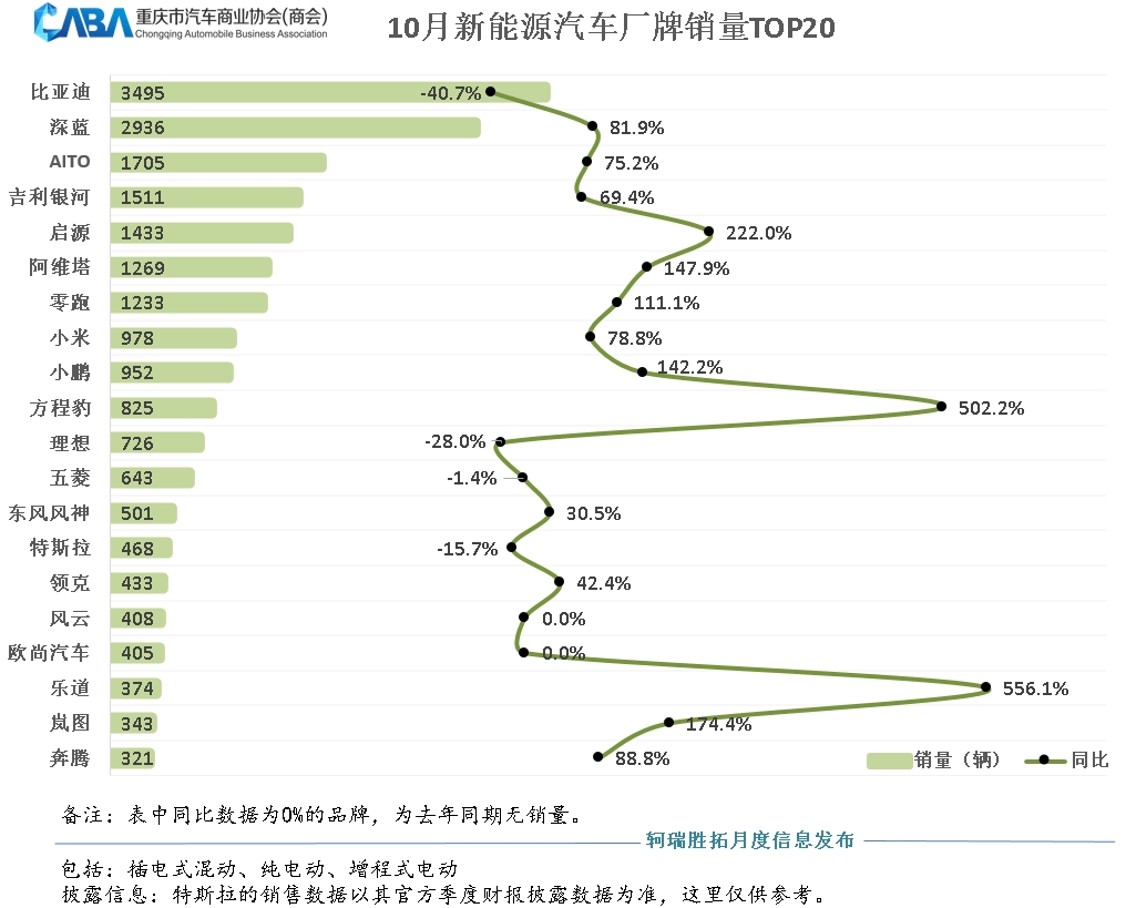 重庆新能源品牌销量TOP20