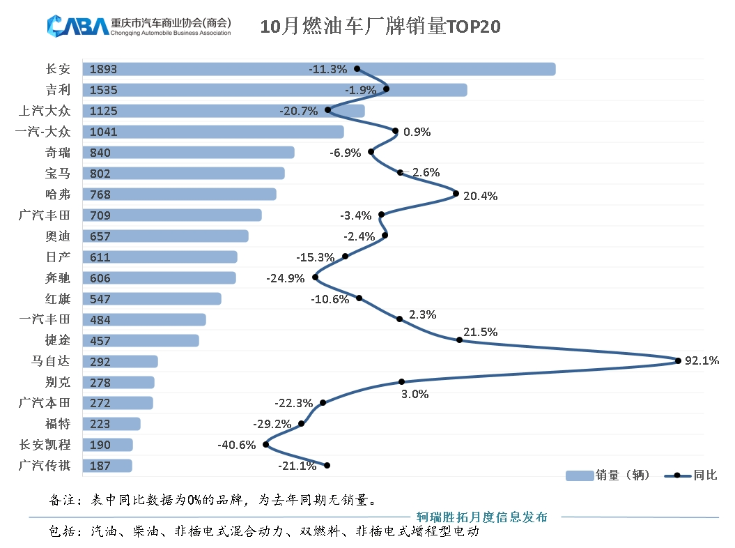 重庆市场燃油品牌销量TOP20