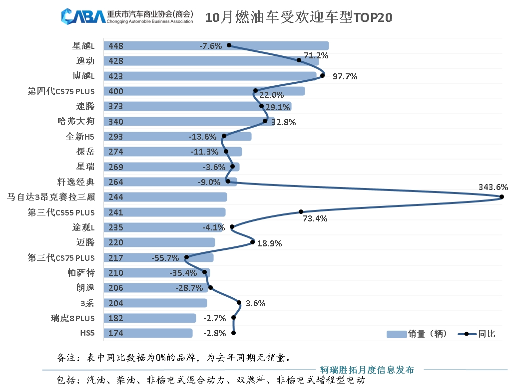 重庆燃油车销量TOP20