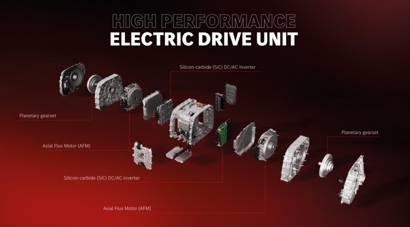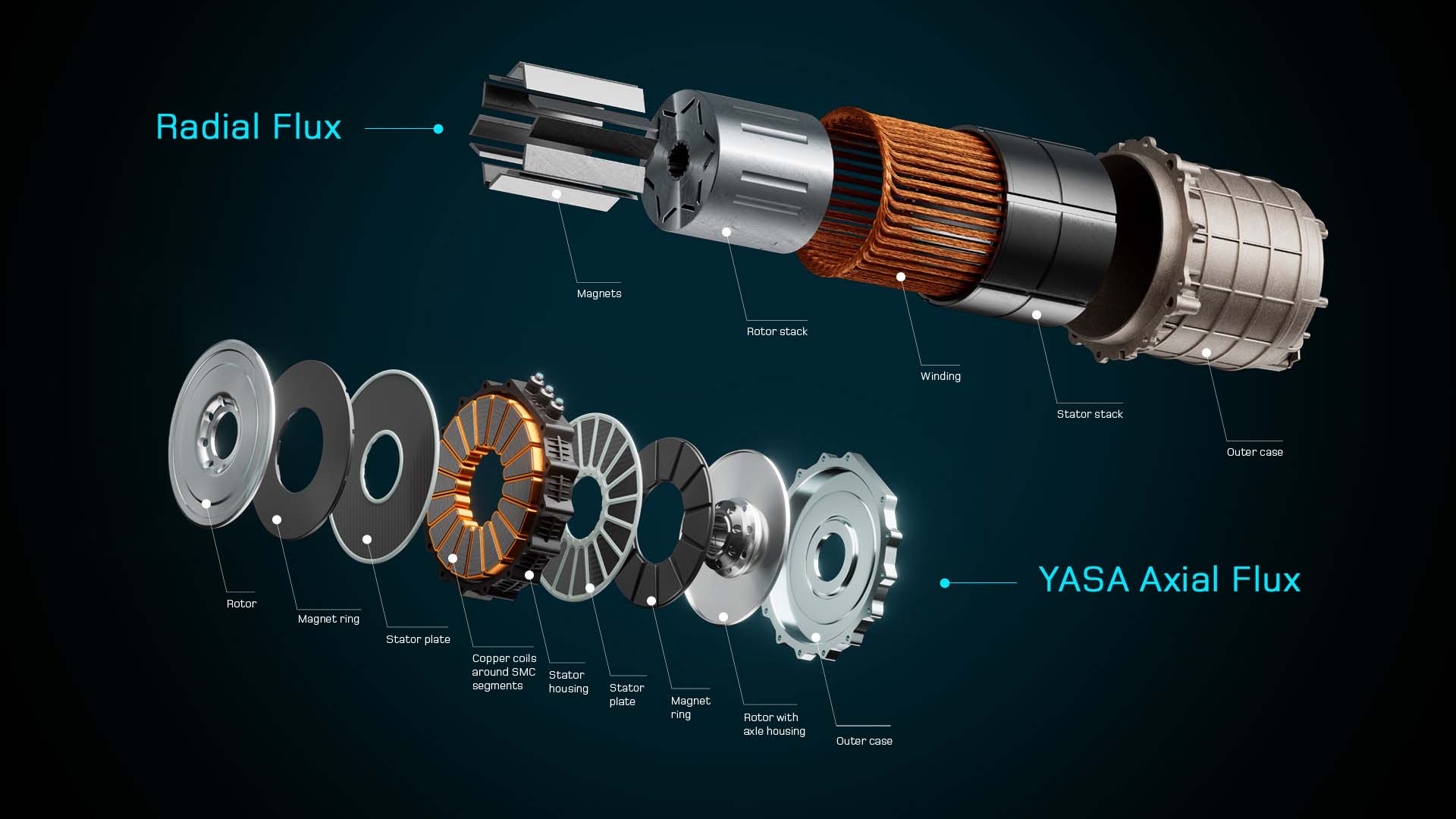 它是由全资收购的英国 YASA 公司研发的,单台重量仅12.7公斤(差不多一袋大米的重量),但持续输出功率能达到350-400千瓦,功率密度高达每公斤59千瓦!