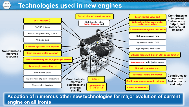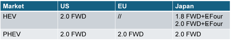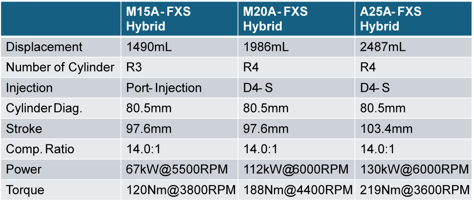 Dynamic-Force中有三台核心机型,分别对应TNGA-B/C/K三个平台。每台机型都有Hybrid与Non-Hybrid两种制式,差别主要是混动机型更高压缩比、Atkinson燃烧方式以及喷射结构。按照年销量配比来看,M20系列显然是核心。