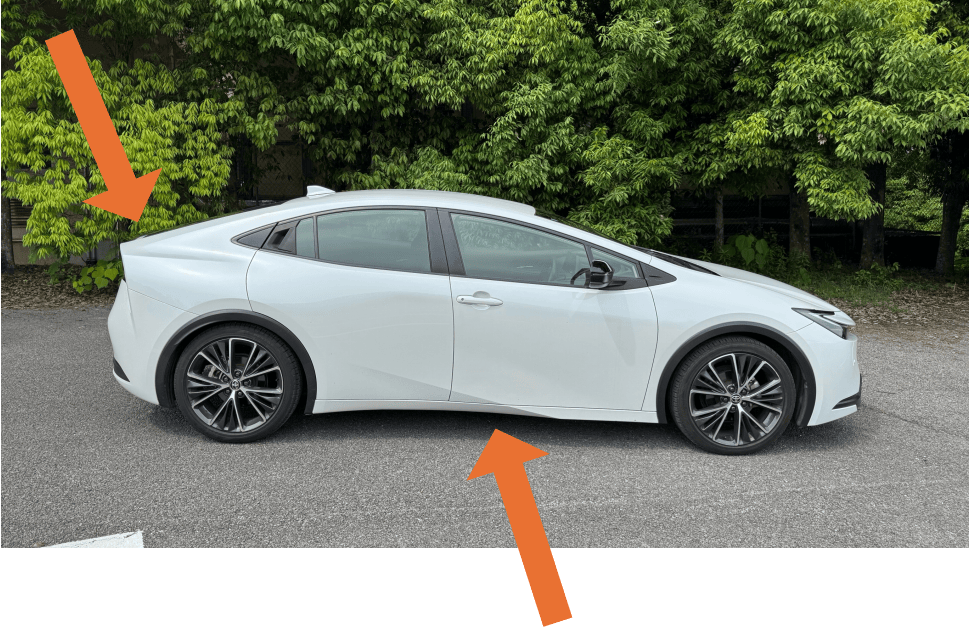 Keen Look主题来自于低矮的前脸以及锋利的造型,车灯无论日间夜间都有极好辨识度。然后是平直机盖、小角度风挡、大溜背、溃缩的Kamm风格车尾,一同形成空气动力学主题风格。低车身和窄车窗带来了巨大的钣金面积,简洁车身增加了整体性,减少了缝隙以及配合。不同于马自达3简单的巨大单一钣金面,普锐斯加入了门槛上翘起的折线以及车尾的宽肩线,这些线条变化避免了一块钣金统治整个侧面造型的问题、降低了钣金质量的直观影响。