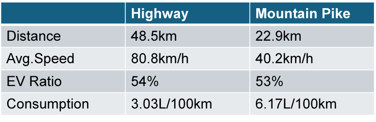 一方面PB10并没有结构变化,另一方面M20A并不是标准的DHE,依然需要较高转速才能维持扭矩,所以发动机Rubber Band状态无法避免,高负荷时依然会长时间高转速,让人觉得车辆动力不足。PB10的优势是大驱动电机可以应付更多低负载工况时,EV模式封顶车速也从40km/h提高到60km/h,中高速巡航时也有更大几率实现EV,降低了发动机的启动频率。