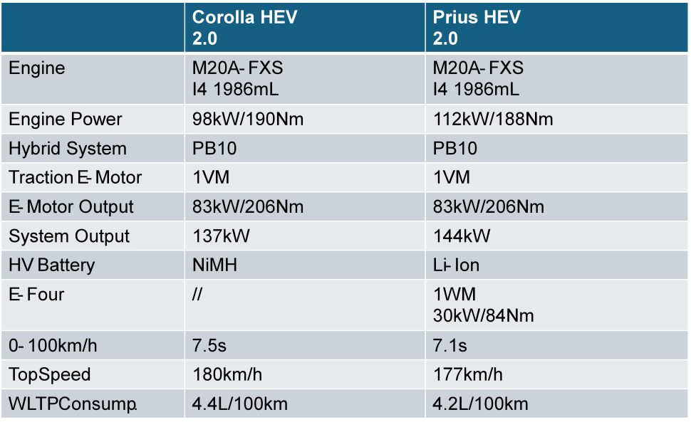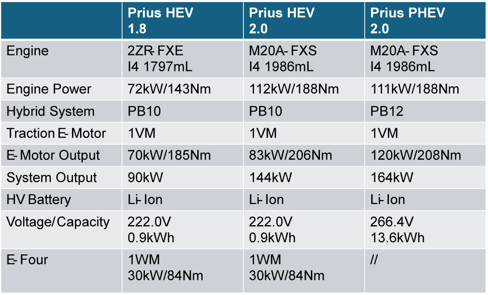 既然要做Fun Car,就不能没有动力。丰田在过往几代普锐斯上都会引入全新动力系统,一二代开创HEV纪元、三代PHEV、四代THS-2 New系统。只是五代普锐斯使用的动力系统与5年前的十二代欧版卡罗拉并无差别:THS-2 New PowerSplit, 1.8升2ZR-FXE以及2.0升M20A-FXS两台发动机。唯一和卡罗拉的区别是同时拥有HEV以及PHEV两种车型、前驱以及E-Four两种驱动形式。