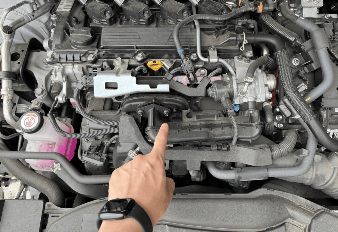 普锐斯使用0W-16标号机油,用于降低来自润滑系的摩擦阻力,保养周期1.5万公里。测试车方才8万公里,机舱内尤其是低压EGR附近已经满是油渍。不多说,发动机整体工况还是比较苛刻。