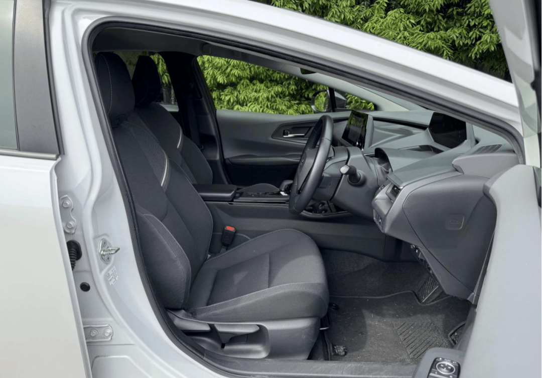 首先巨大的风挡以及位于B柱后方的车顶高点极大的限制了前排乘员的头部空间,丰田因此挖了一个车顶凹槽加以补偿。纵然几乎垂直的车门结构一定程度上保证了头部侧向空间,但下卷的车顶边框以及倾斜风挡还是让人略感逼仄,头部侧向空间完全无法拓展。这也限制了普锐斯车门开启面积,与低矮的车顶弧线一起让上下车变得极为困难,往往需要躲着门框将身体送出车外,并且需要扶一把车门来支撑身体重心。