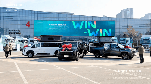 在国内,重卡营销网络达480余家、轻卡300余家、新能源400余家,实现重点区域与细分场景全覆盖;在海外,产品远销150多个国家和地区,搭建起140多个海外代表处、250余家一级经销商、700余家二级经销商及服务配件网点的全球化营销服务体系。