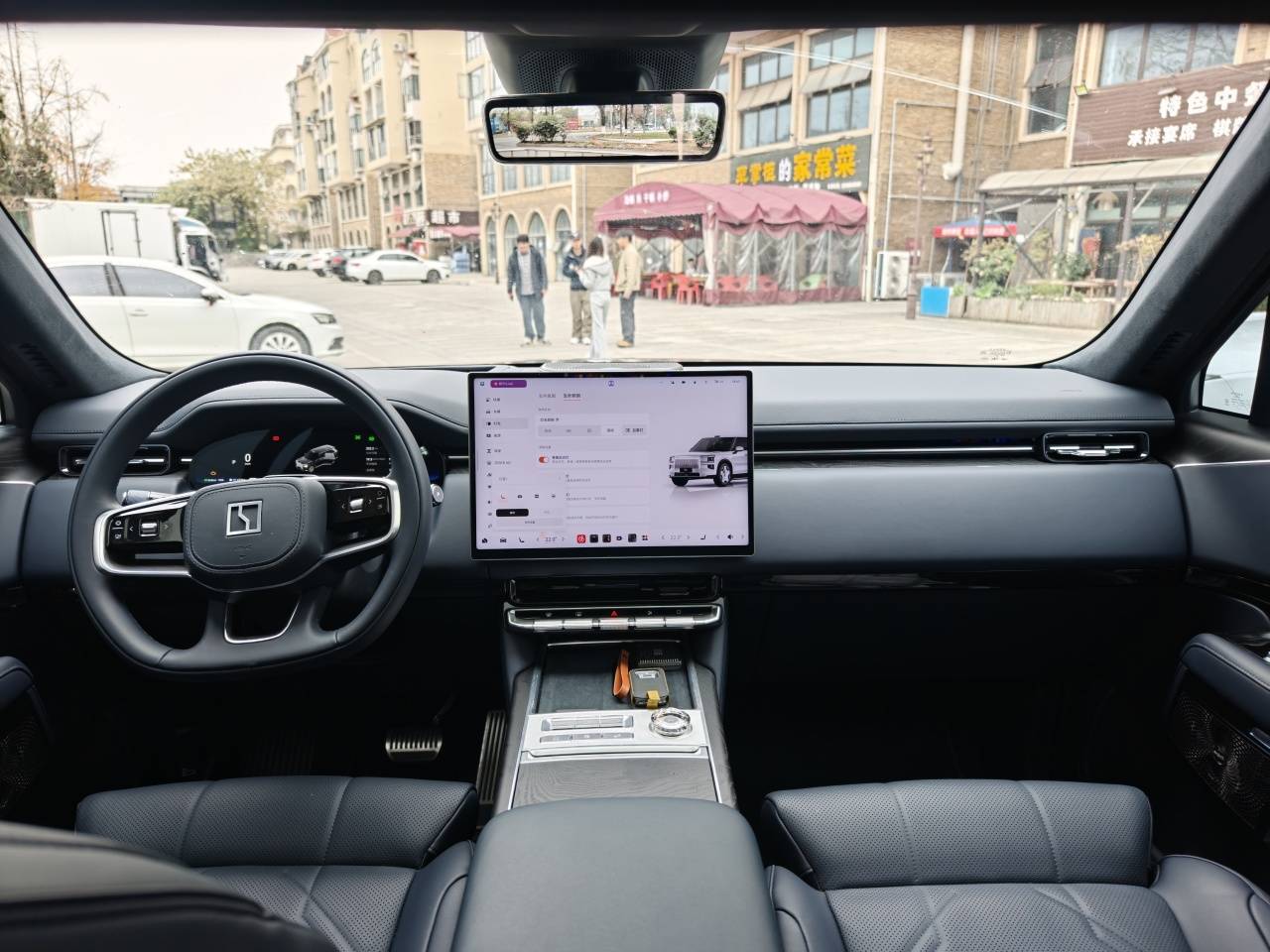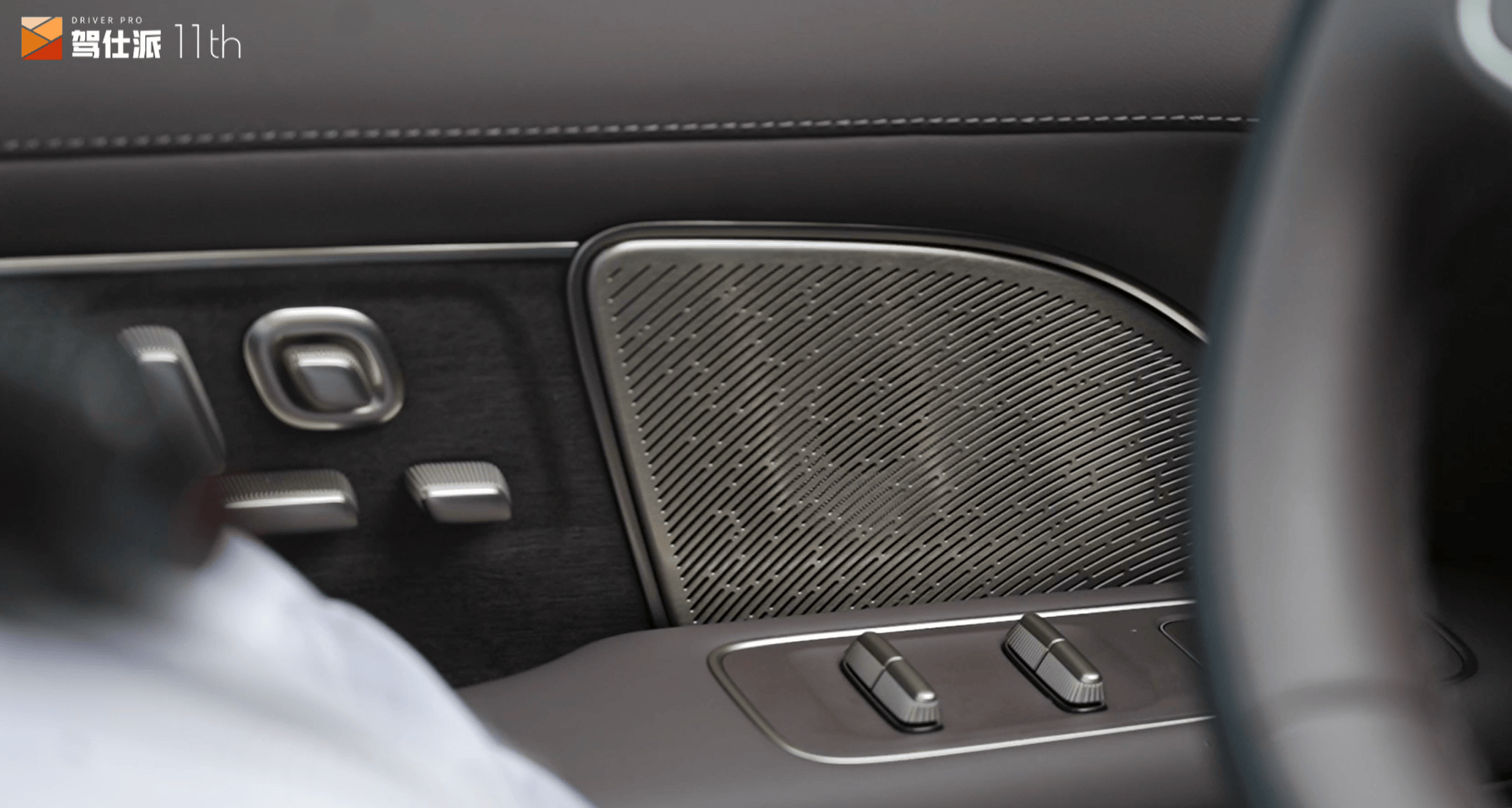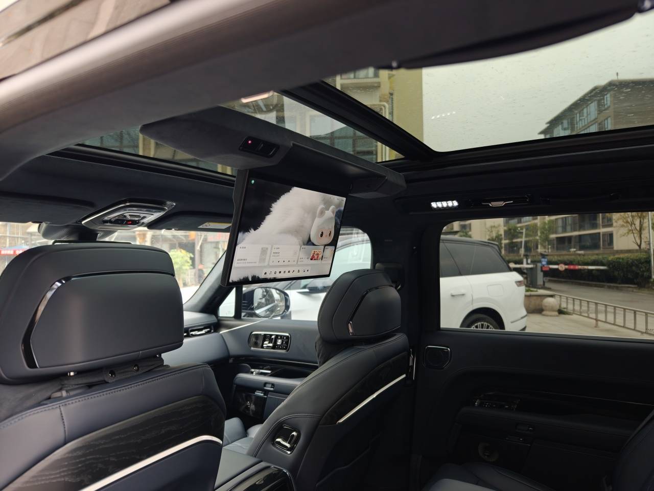 极氪9X的内饰则更显“奢华”,大量的水晶切割按键、悬浮式大屏、分区氛围灯与暗色音响罩的组合,把“奢华感”很外露的表现出来。前排门把上布置了复杂的实体按键,操作逻辑稍显复杂。细节上有些点很有意思,包括中央操纵台两侧使用的是实木,而不是大家常用的皮革包裹。另外试驾车采用的是单块中控屏幕,而没有选装副驾屏,这其实显得副驾IP台更垂直、更符合硬派的特征。