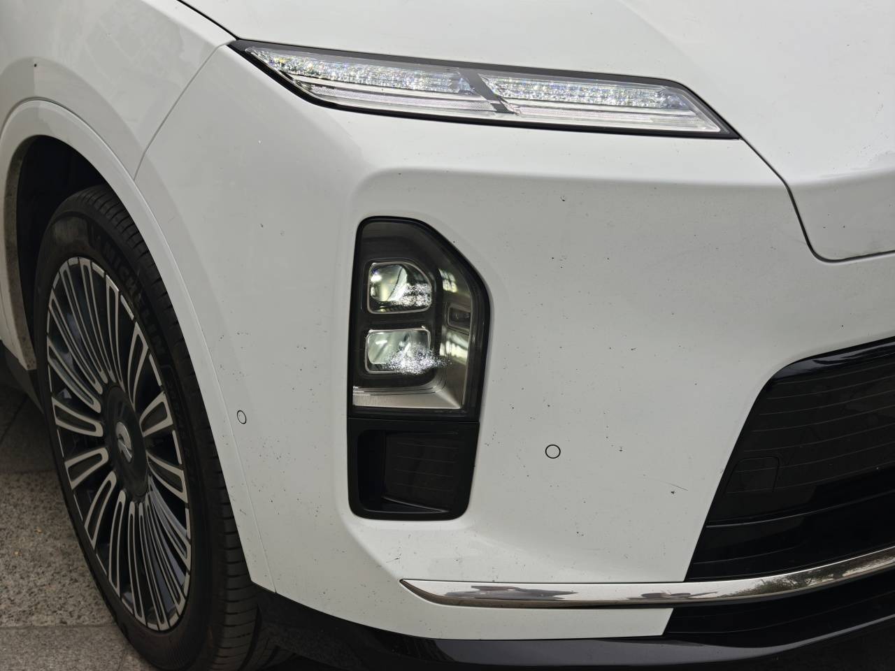 有意思的是,两款车都选择了水晶切割的日行灯设计,只不过蔚来ES8更显眼,而极氪9X则采用蟹钳式双灯组设计。