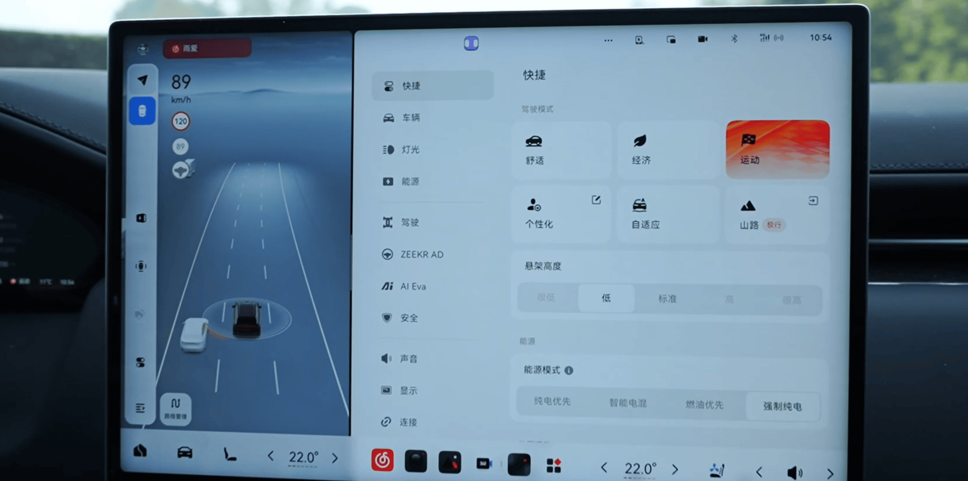 所以如果你想在山路或者城市道路开起来更愉悦一点,选择运动模式,或者在舒适模式里面把除了动力之外的设定都调到“标准”,其实整个的体验会更好,虽然底盘会偏硬一些,但是至少不会觉得拧巴。