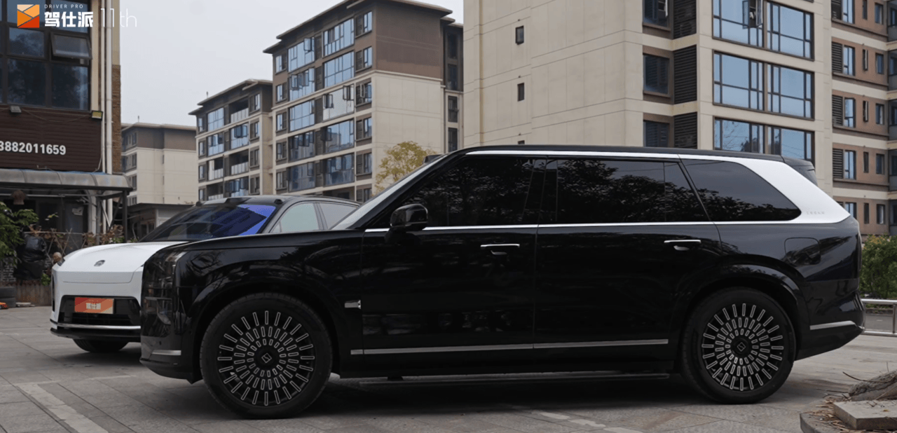 极氪9X则因“库里南式”造型与短促前舱的组合,显得“短脖子”感较强,无法实现修长前舱带来的优雅稳重造型。极氪9X比较有意思的是采用了传统把门手,完全不考虑风阻系数,但实际里面是有微动开关,也并不是需要拉开门锁。而极氪9X的粗壮哑光银色D柱是一个很突出的设计,但是倒角和分缝的处理比较拧巴。