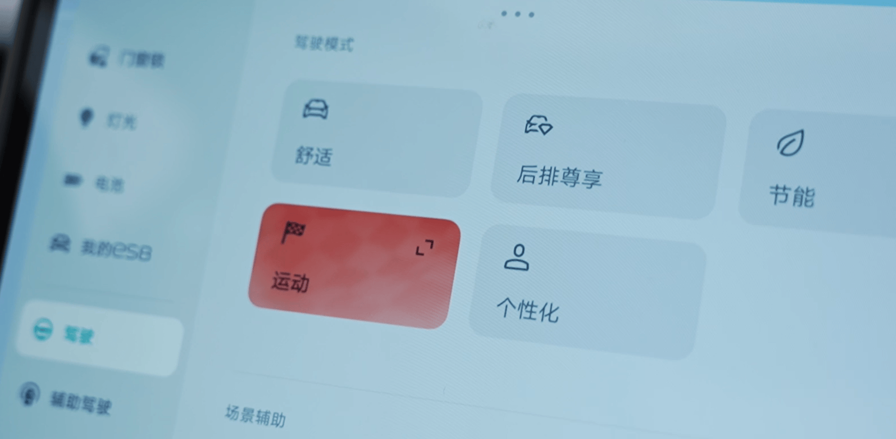 蔚来ES8当然也可以很激进,但是在舒适模式下,整个动力输出是相对比较克制的,甚至你踩到 120公里/小时、在油门开度相对比较大的时候,它也能很稳定地保持在120公里每小时的时速,这个非常稳定。如果你选择后排尊享模式,那么整个油门会更温和,完全是一种气定神闲的状态,会带来更稳定、更舒适的驾乘感受。在运动模式下,蔚来ES8的动力输出更活跃一些,但也不会像特斯拉那种很迅猛地加速让你觉得太突如其来,而是依然保持线性感。