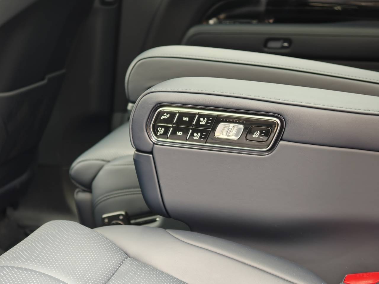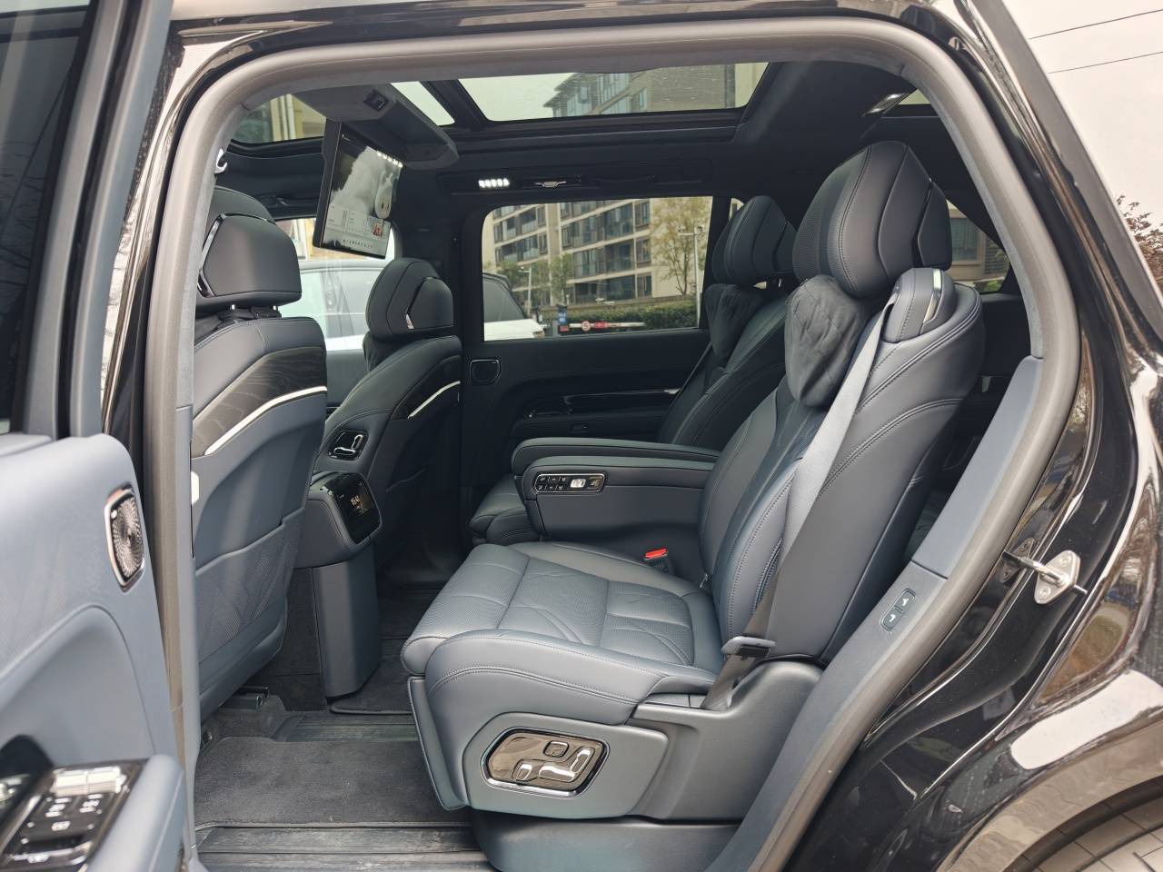 相比蔚来ES8第二三排非常传统的设计,极氪9X的后排设计有创新、也有槽点,更值得多说两句。首先是极氪9X搭载了可滑动的17英寸后排屏,主要是为了配合全景天窗设计,不用像常规设计那样遮挡,所以内部通透感更好。但它的第二排独立座椅又把座椅调节放到了座椅上、而非像前排一样放在车门上,所以换到后排后很不习惯。而且座椅和车门靠得比较近,伸手去调节座椅很容易因为手表的原因而卡住。