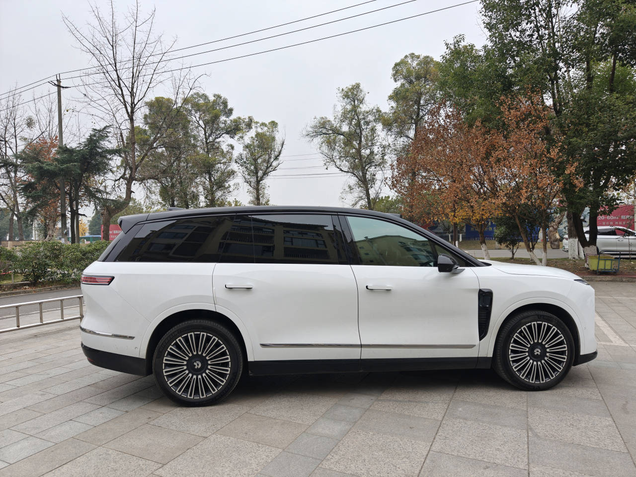 侧面比例上,两车均采用短L113设计,但视觉上蔚来ES8凭借更协调的车身姿态,包括略微下滑的车顶线、营造出类似于旅行车姿态,整体观感更为舒展。而平整的B/C/D柱,再加上天际线尾灯,都是“标准”的蔚来设计风格。同时标配了21英寸的轮毂,265/45 R21的米其林Primacy 5浩悦五代的轮胎主打一个静音性和耐磨性,对于大型SUV来说一个更均衡的选择。
