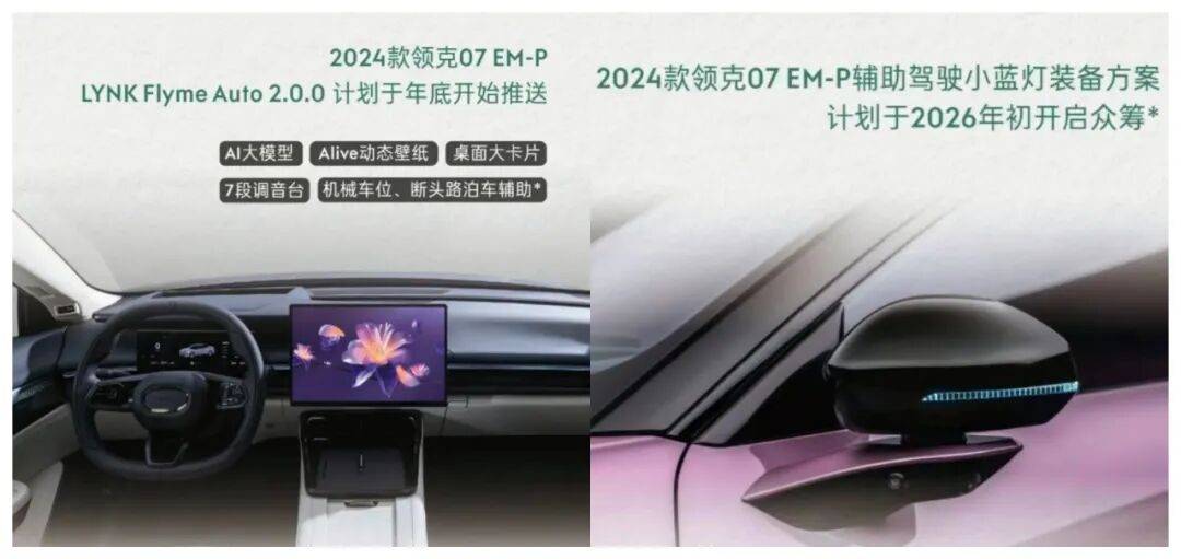 LYNK Flyme Auto 2.0.0智舱系统已进行国家备案,计划于年底推送至2024款领克07 EM-P车主,确保老车型也能享受最新的交互体验。此外,贴心的“辅助驾驶小蓝灯加装方案”也已提上日程,计划于2026年初开启众筹。更值得一提的是,领克官方宣布终身免费开放NOA辅助驾驶功能!这项服务在许多品牌中通常按月收费。