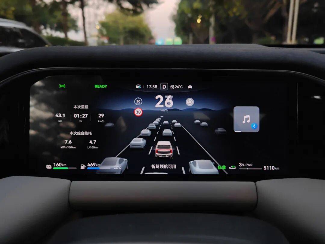 传祺向往S9乾崑提供有许多动力与底盘设定功能,笔者分别试了一下,感觉将驾驶模式放在“舒适”,悬架软硬度放在“运动”,车辆模式放在“智能”,开起来平衡感最好、最舒心。至于这车的能耗表现,2天测试下来,平均电耗大约7~9kWh/100km,油耗约3~5L/100km,算是蛮省的。