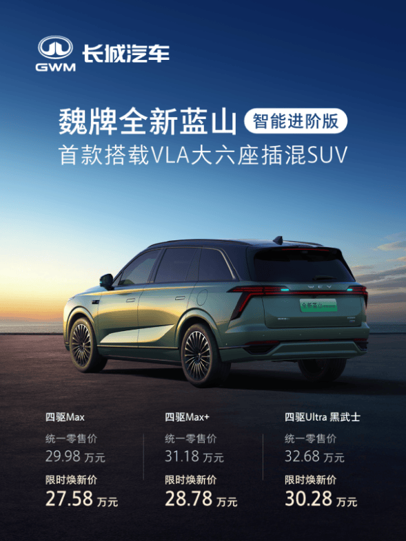 全新魏牌蓝山智能进阶版的上市,用 27.58 万元起的限时价,给出了长城的回答:在这个时代,真正的豪华不再是“堆料”,而是“大脑”与“肌体”的高度协同。