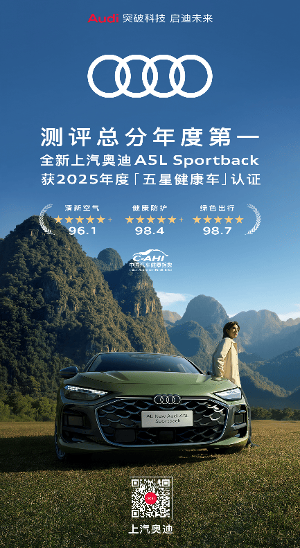当你拉开车门,是否曾下意识深吸一口气,担心潜藏的甲醛、异味或看不见的细菌?现在,一款用科技重构健康座舱标准的“优等生”来了——全新上汽奥迪A5L Sportback,不仅强势斩获2025年度C-AHI中国汽车健康指数五星健康车认证,更以全维度碾压级表现登顶年度总分榜首!
