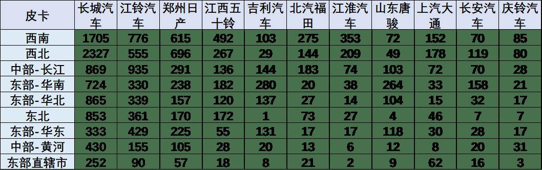 皮卡还是北方和西部市场表现相对较强,这也是因为北方和西部市场经济相对不活跃,主要是靠种植和工程建设为主拉动需求。