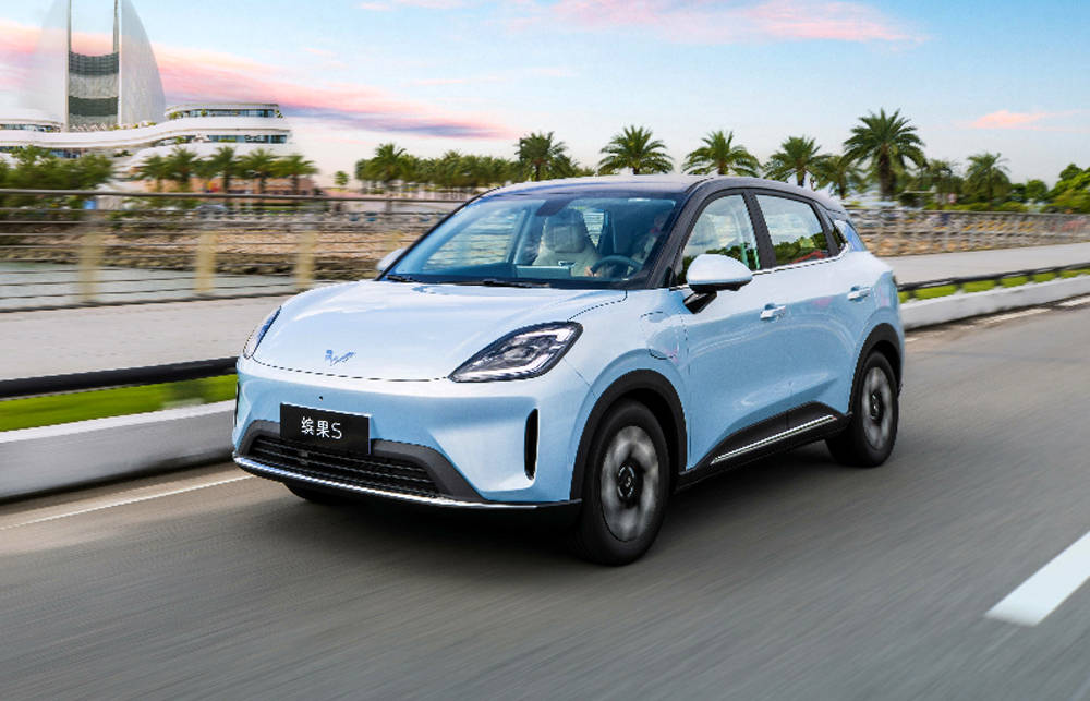 定位是小型纯电动车的五菱缤果S,该车于今年9月27日正式上市,采用的是单电机驱动,CLTC纯电续航里程分别为325公里和430公里,电动机总功率为75kW,支持快速充电,除低配车型外,其他三款车型都拥有对外放电功能。