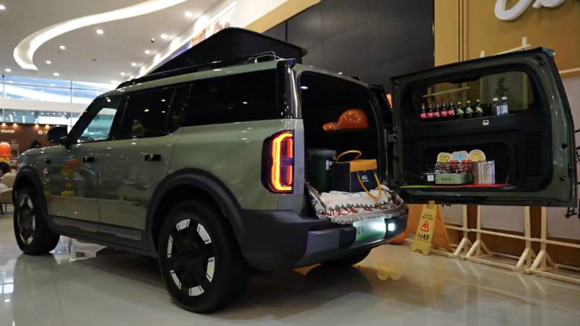 为强调“可野”定位,智趣烈马做了大量的功能专属设计,例如,配备电动举升车顶,打开后可增加36cm后排头部空间;搭配“小憩模式”,车内铺好床垫后,成年人能轻松坐在上面,便于户外临时休息。尾门还设计模块化区域,能快速搭建一个露营操作台,并配备有6.6千瓦的外放电以及插头,满足户外用电需求。