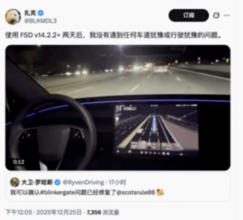 12月25日消息,日前,特斯拉向北美地区的Model 3、Model Y、Model X、Model S及Cybertruck用户正式推送了FSD V14.2.2版本更新。
