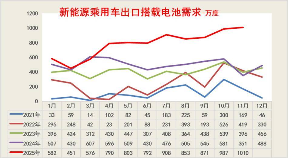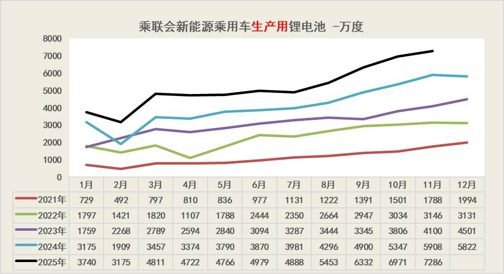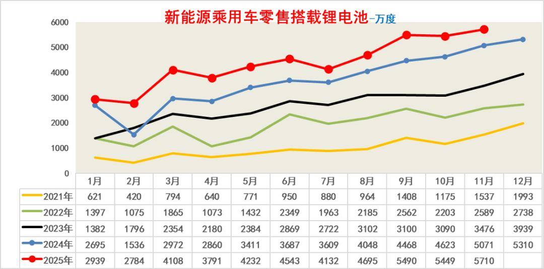 根据乘联数据,新能源乘用车的国内零售的锂电池需求明显疲软,11月仅有5710万度,10-11月走势偏弱。