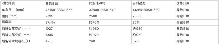 零跑 B10 vs 比亚迪海鸥 vs 吉利星愿 核心尺寸对比表