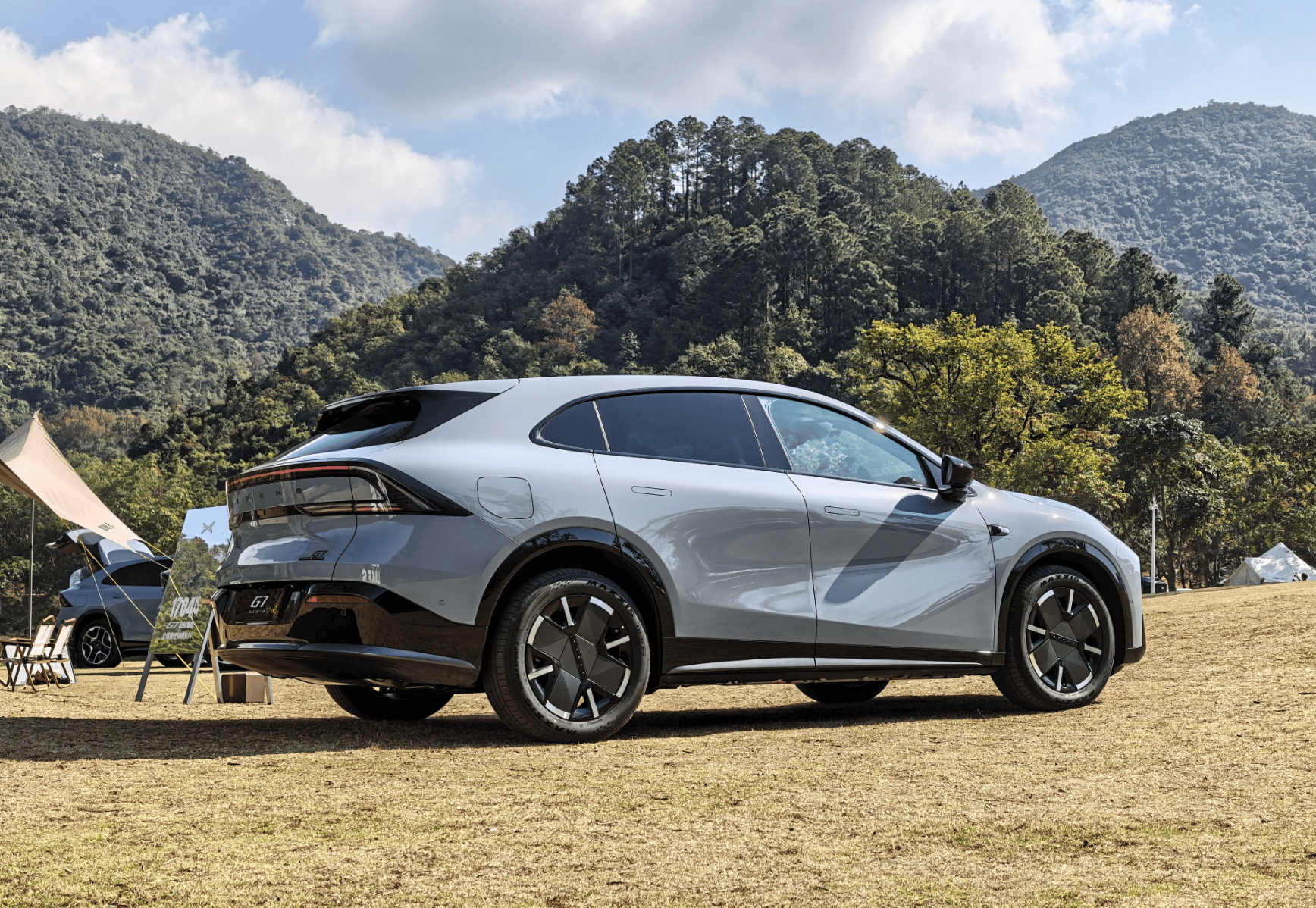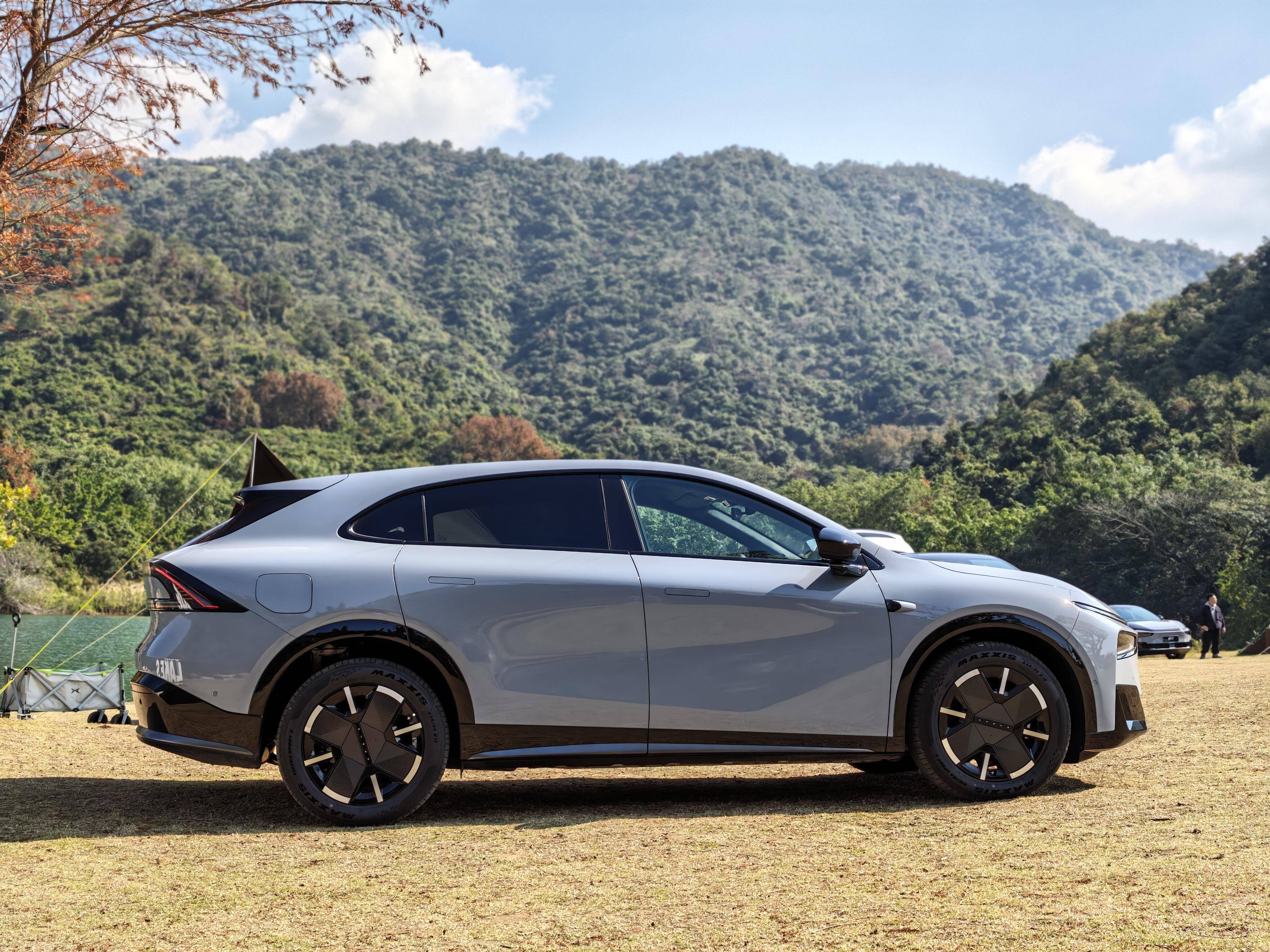 车身尺寸长宽高分别为4918/1925/1655mm,轴距2890mm,相比纯电版加长26mm,其余数据保持不变。车身侧面继续采用简洁、动感的溜背式造型,而诸如无框电吸门、无边框外后视镜、隐藏式门把手、星环贯穿式尾灯等时尚元素也均没有缺席,主要新增“星暮紫”配色,还换装了全新19英寸双色低风阻轮毂,并可选装20英寸运动/熏黑轮毂。