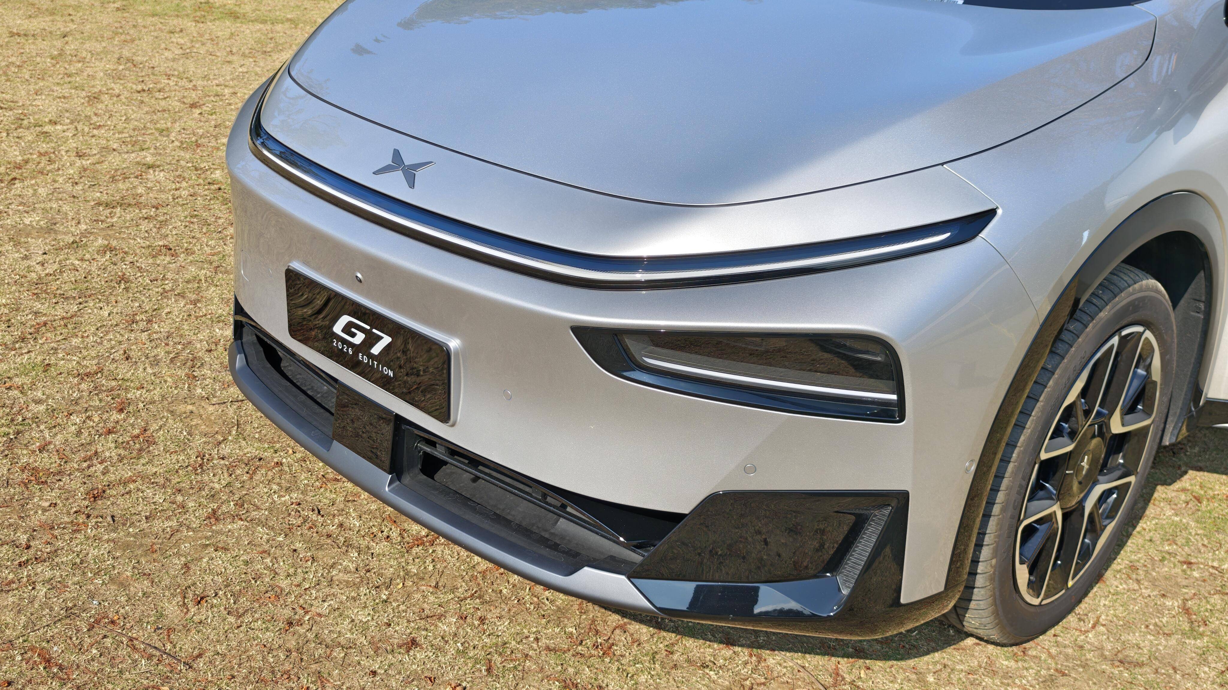 从实车图来看,小鹏G7增程版基本延续了纯电版的造型设计,不过俯冲的封闭式前脸上将配备全新一体式无断点贯穿灯带,下方远近光灯组造型进行调整,并换装了贯通风格的熏黑前包围,两侧导风槽配合突出的枪灰色前铲,显得更有视觉冲击力,此外还将配备AGS主动式进气格栅。