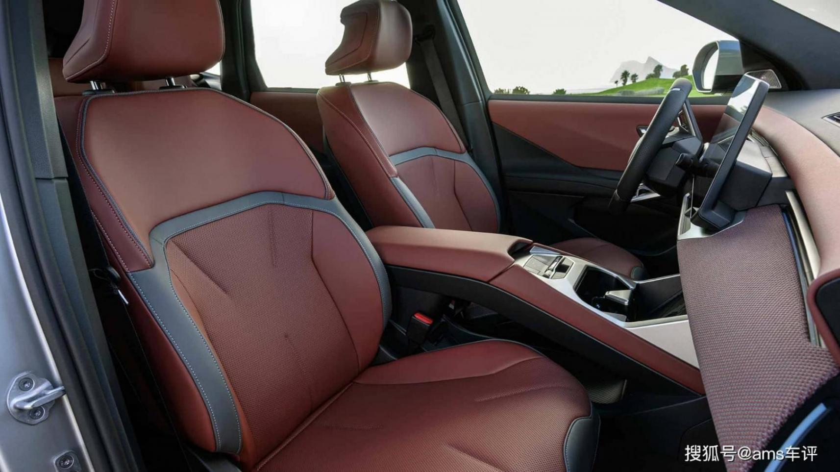 哦对了,还有充裕的后排空间,乘客还可以轻松将脚伸进前排座椅下方。靠背倾角可调,但座椅坐垫本身“缺少轮廓感”这一点则无法改变。电动平台的优势在于:没有碍事的中央传动隆起;而在前排,一体式固定中控台把驾驶者与副驾驶的区域分隔开来——虽然提供了很多储物空间,但那种特立独行的 iX 所拥有的“宏大空间感”,在这里并未重现。