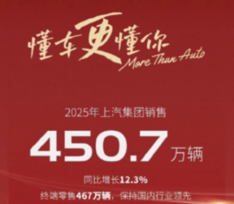 1月4日,上汽集团发布数据显示,12月,上汽集团整车销量为39.94万辆,而2025年全年,上汽集团销售整车450.7万辆,同比增长12.3%,终端零售销量达到467万辆。上汽集团在2025年表现,继续呈现反弹趋势,也完成了销量端目标。此前,2024年年报显示,上汽集团在2025年销量目标为450万辆。