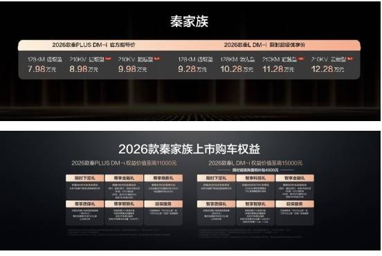 2026年刚开年,比亚迪就放出了一个大招——2026款秦L DM-i和秦PLUS DM-i 210KM长续航版双车同步上市,售价亲民,只要8.98万到12.28万元!