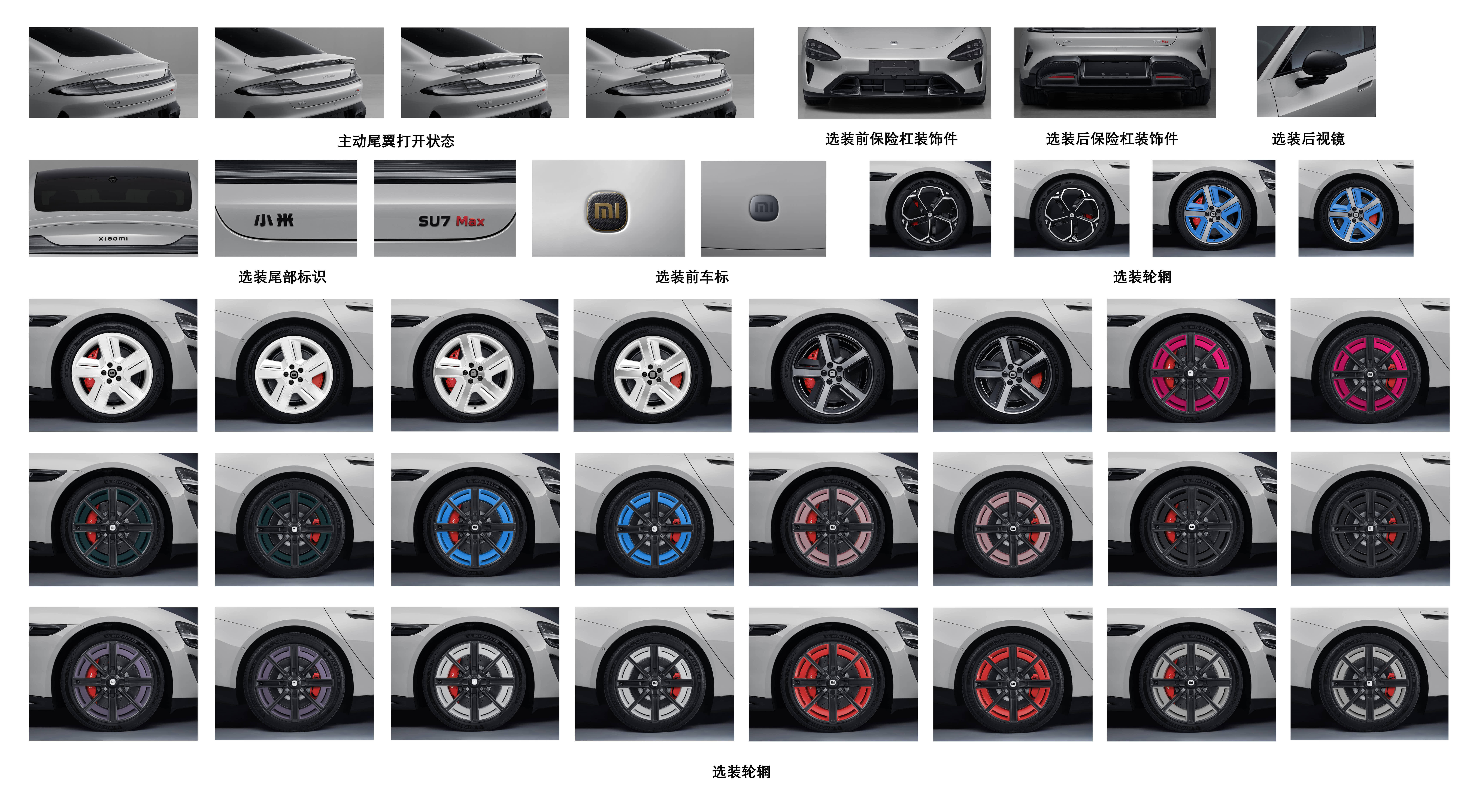 外观设计上,新一代小米SU7跟现款几乎没有区别,标志性的“水滴大灯”远光最远照射距离可达400米。侧面延续了溜背式动感造型,搭配富有层次感的线条。此外,新车配备了全新造型的20英寸轮毂和红色刹车卡钳,并全系标配前窄后宽轮胎(前 245mm / 后 265mm)以及前四活塞固定卡钳。