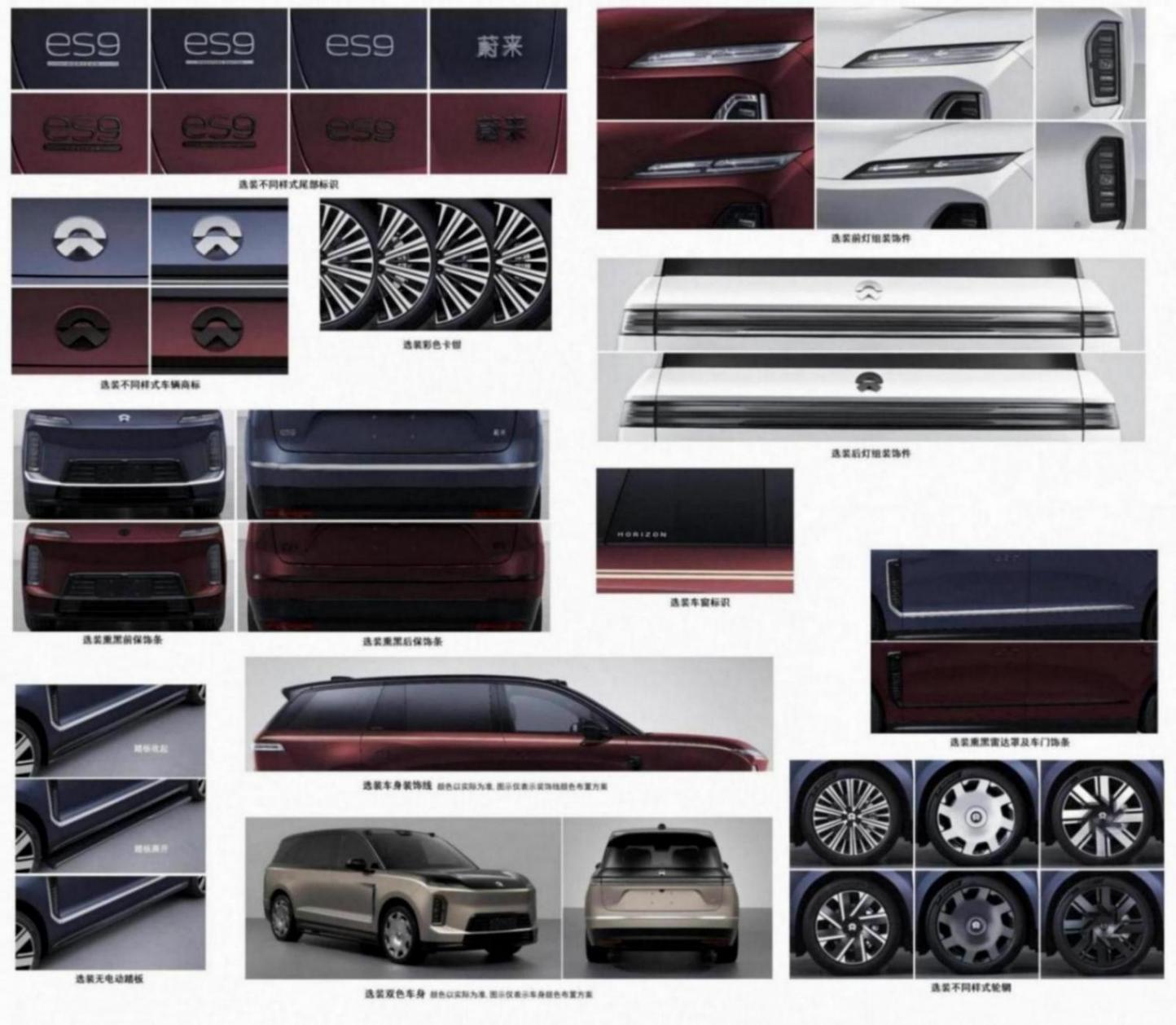 4、 还有几点我们可以在工信部目录注意到的细节是,从前舱盖线条来看,ES9不会像ES8和L90那样拥有前开口的前备箱。这个其实没问题,因为毕竟是全尺寸SUV,尺寸决定了后备箱已经游刃有余。当然,前备箱肯定是有的,而且从蔚来的能力上看,尺寸也不会太小。另外就是类似于ET9的特别版,蔚来为ES9申报了双色车身以及琳琅满目的轮毂造型。
