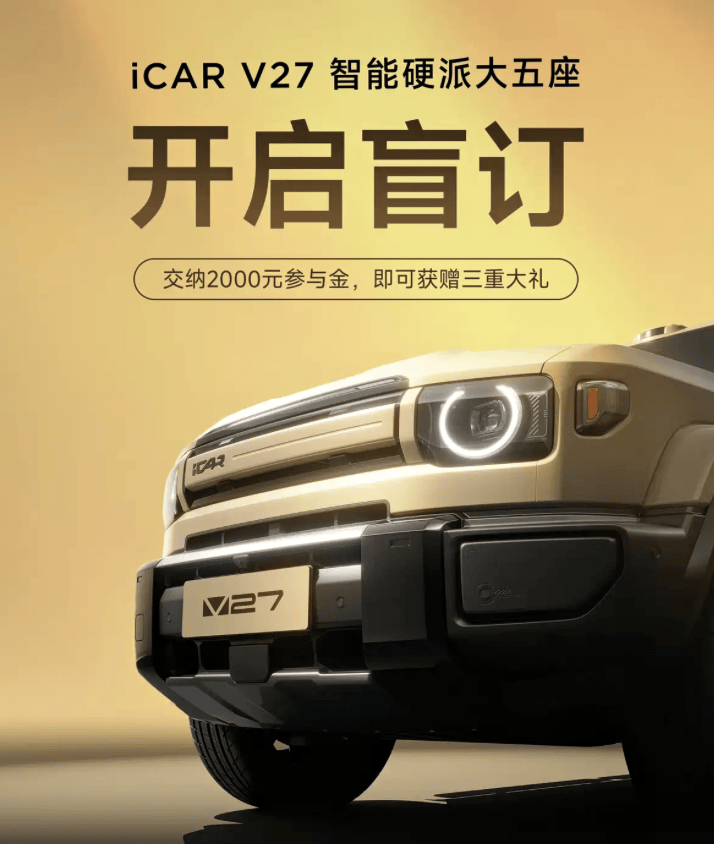 近日,iCAR V27开启盲订,新车预计将于一季度上市。