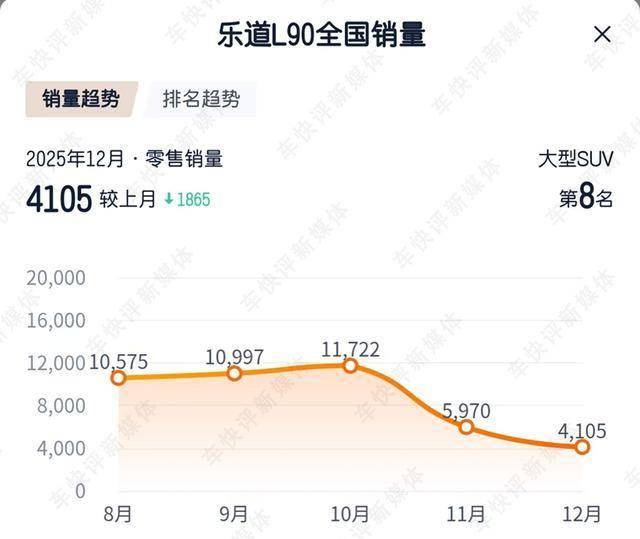 这边全新蔚来ES8一路高歌猛进,而那边L90却显得有些黯然失色了。在去年8、9、10连续三个月销量破万后,11月和12月乐道L90销量突然骤降。11月卖了5970辆车,12月更是降至4015辆。