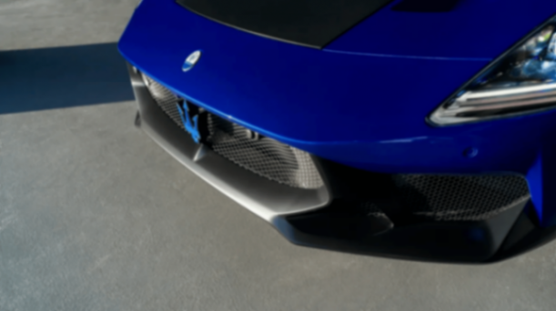 想要体验GT2 Stradale的极致驾趣,需选装全套赛车化配置:除碳纤维桶形座椅外,还包括赛道蓝车漆,以及车身侧面那根曲棍球棍造型的意大利国旗拉花,拉花末端点缀着玛莎拉蒂经典的三叉戟徽标。