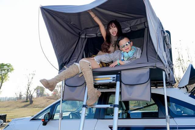 原厂自带的车顶帐篷系统精准解决家庭户外休憩难题,采用便捷拆装结构,单人即可快速完成搭建与收纳。帐篷展开后拥有2米乘1.6米的超大空间,外壳和底座严选工程级ABS材质及强承重铝合金导轨,最高承重达350公斤,帐篷面料采用600D高密度防水牛津布,防水指数高达8000mm,从容应对狂风暴雨等复杂天气。