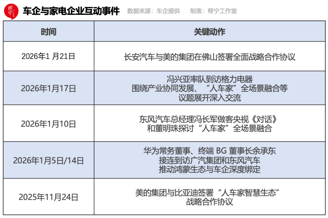2026年开年,车企与家电企业的跨界联动持续升温。