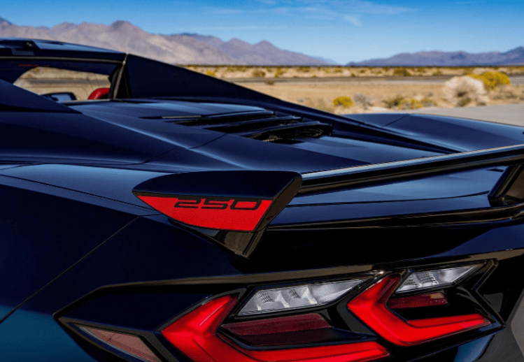 每辆限量版车型均配有星条旗主题的缎光银或缎光黑全车条纹拉花,车门与扰流板边缘饰有"250"旗帜图案。车内配有带独立序列号的专属铭牌与内饰徽章。